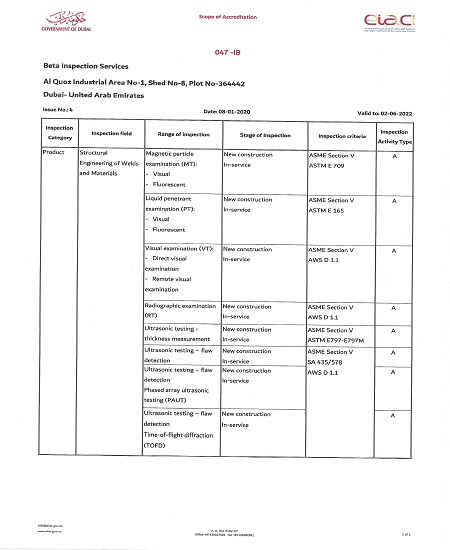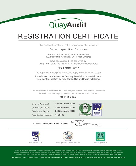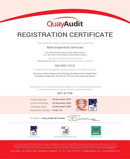 BETA INSPECTION SERVICES is one of the leading NDT & Heat treatment contractors in the UAE. It was established in the year 2007 in Dubai with a strong force of highly experienced and energetic engineers. We are approved by ADWEA & ADNOC group of companies and hold ISO 9001, ISO 14001, OHSAS 18001 and ISO 17020 (DAC) certifications. We have offices in Dubai and Abu Dhabi.